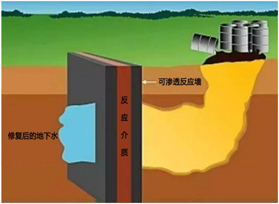 5、滲透反應墻,是一種原位處理技術,在淺層土壤與地下水,構筑一個具有滲透性、含有反應材料的墻體,污染水體經過墻體時其中的污染物與墻內反應材料發生物理、化學反應而被凈化除去。